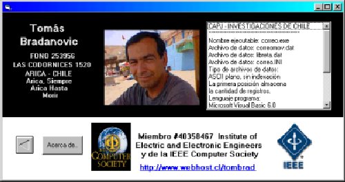 Al hacer click sobre la palabra "Tomás Bradanovic Seguridad Informática" aparece la Pantalla de Información de Programa (Acerca de)