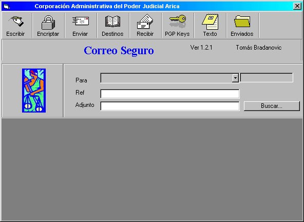 El programa cliente de correo SMTP está diseñado para encriptar y enviar mensajes seguros a través del correo electrónico. Para mayores antecedentes sobre la justificación del proyecto vea el documento Internet y los Problemas de Seguridad en Tribunales.