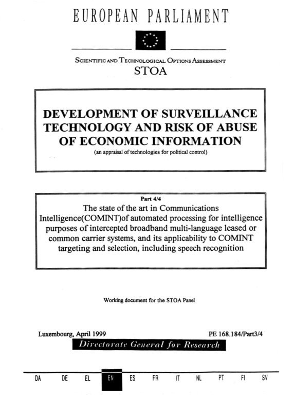 2."An appraisal of the Technologies of Political Control", Steve Wright, Omega Foundation, European Parliament (STOA), 6 January 1998.