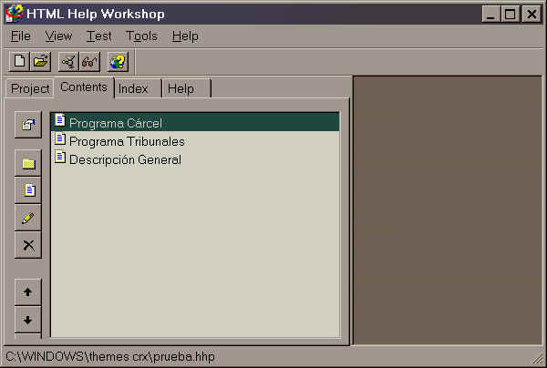 - Voila! esa es toda la ciencia y ya tenemos nuestro primer proyecto sencillo de ayuda. Se llama "prueba.hhp" y lo podemos copiar a cualquier computador con Win98 en adelante y funcionrá en un solo archivo compilado en lugar del montón de hojas HTML e imágenes que teníamos al principio. Fácil ¿no?